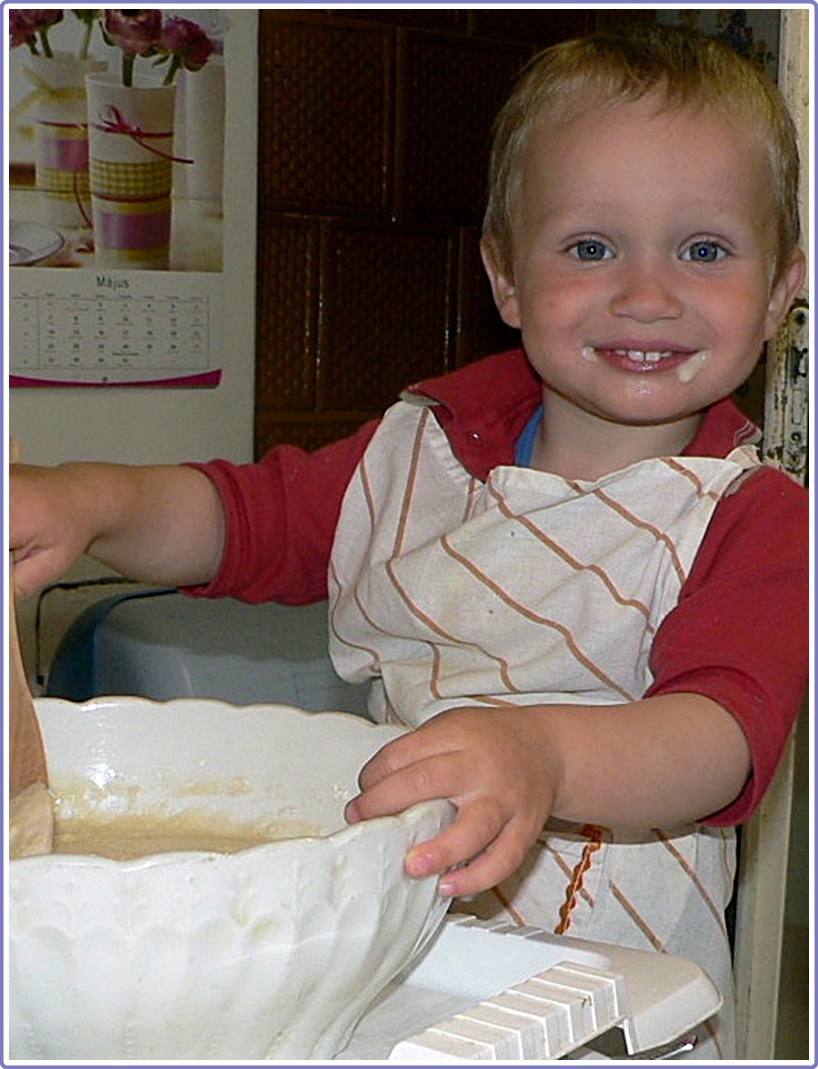 A fotón látható, amint a kis kuktám segédkezik a készítésnél, szóval érdemes a gyerekeket is bevonni a sütésbe, mert nagyon jó móka a közös sütés.