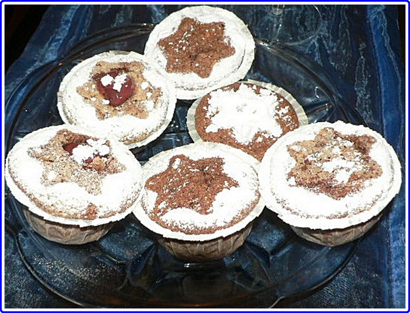 A tojások sárgáját elkeverjük a cukorral, majd hozzáadjuk a vajat, a lisztet, a vaníliás cukrot, a sütőport, a diót, a kakaóport, a fűszerkeveréket és a meggyet. Csomómentesre keverjük. A tojásfehérjéből kemény habot verünk, és óvatosan beleforgatjuk a masszába. Muffin formába töltjük (ha papír nélkül sütjük, előtte kivajazzuk a formát), és 180 fokon megsütjük, tűpróbával ellenőrizzük, ha nem ragad a tűre a tészta, akkor elkészült. Porcukorral megszórjuk, különféle formákat is szórhatunk rá tetszés szerint.